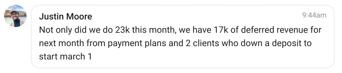 * Have space to take on new clients every month, starting this month.
